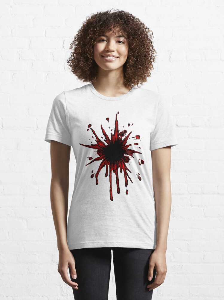 Blood spatter / bullet wound - Costume T-Shirt | Spreadshirt from image.spreadshirtmedia.net Have a crazy halloween with this funny blood splatter tee shirt. This collection contains some of the blood splatter skins. Make your unique style stick by creating custom stickers for every occasion! Bloody gunshot holes in a row. Choose from a wide range of similar scenes. That formation is about the interplay between gravity and surface tension. Vector illustration of gunshot holes in the wall with blood splatter stains. Bullet hole with blood stripes.